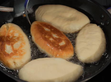 - Gebakken taarten gevuld met aardappelen en uien in een pan