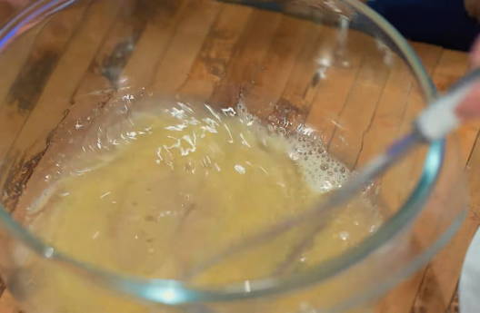 - Voeg geactiveerde gist toe aan het eimengsel en meng.