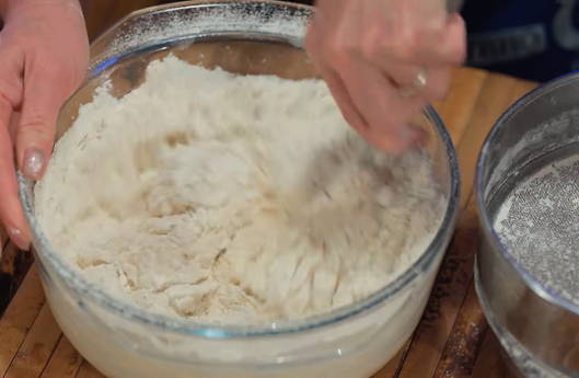 - We mengen alle ingrediënten en laten de gist 15 minuten activeren.