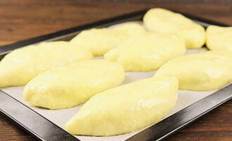 - Kneed voor het deeg melk met gist, ei, suiker, zout, margarine en bloem. Bedek het bereide product met folie en laat 30-40 minuten op een warme plaats staan.