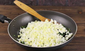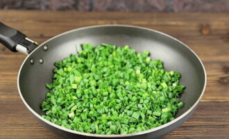 Maal de groene uien en kook ze ongeveer 5 minuten in een koekenpan met boter.