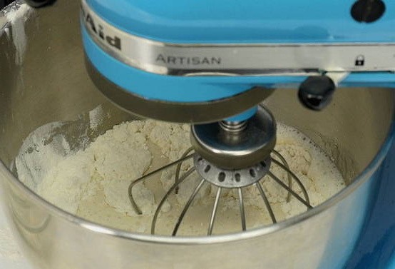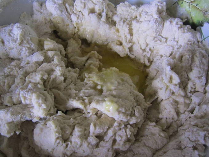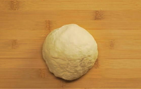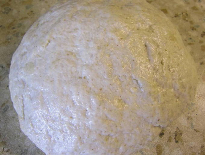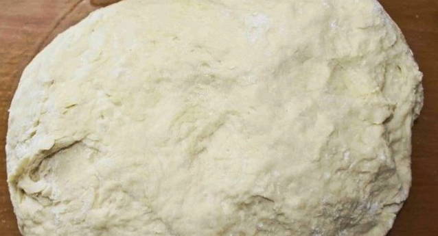 - Kneed de producten tot een gladde deegklomp is verkregen. We geven hem ongeveer 30 minuten rust.