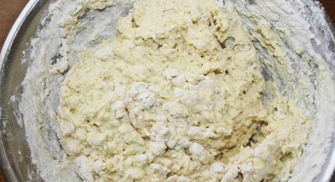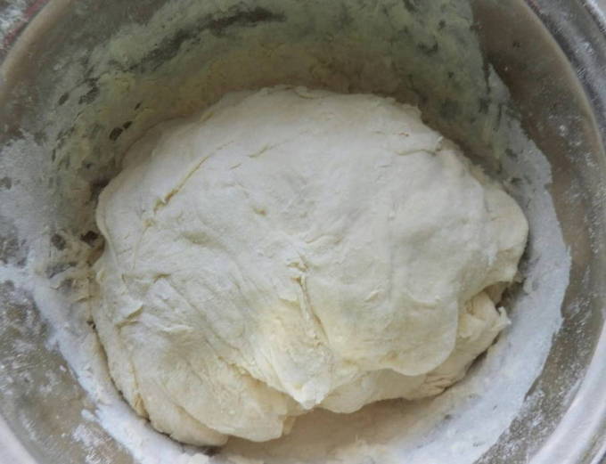 - Meng het melkmengsel met het deeg en de bloem. Kneed de producten tot een homogeen deeg en laat het 30 minuten op een warme plaats staan.