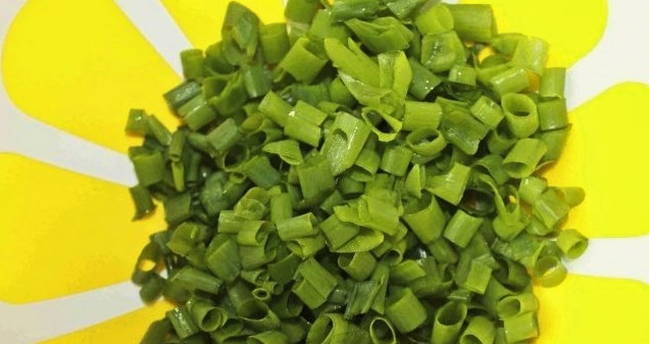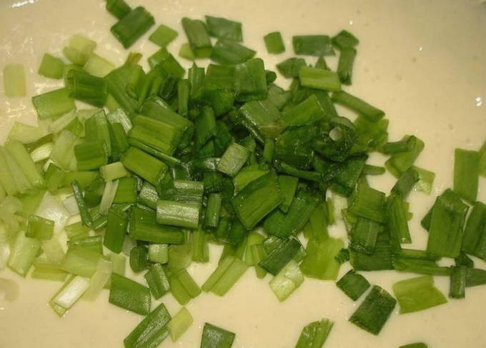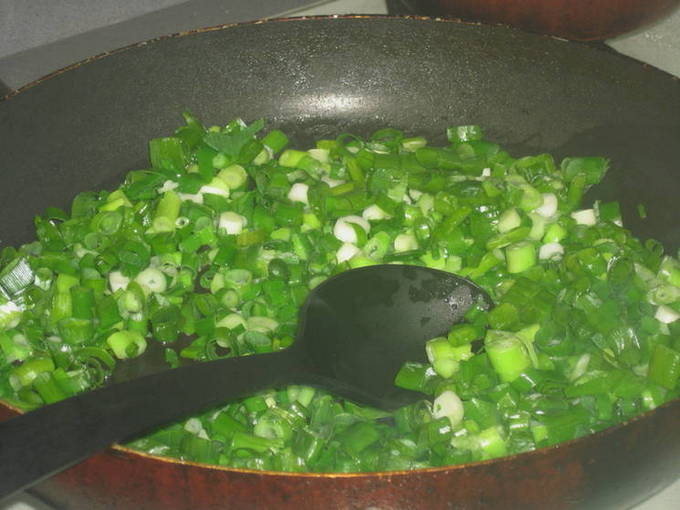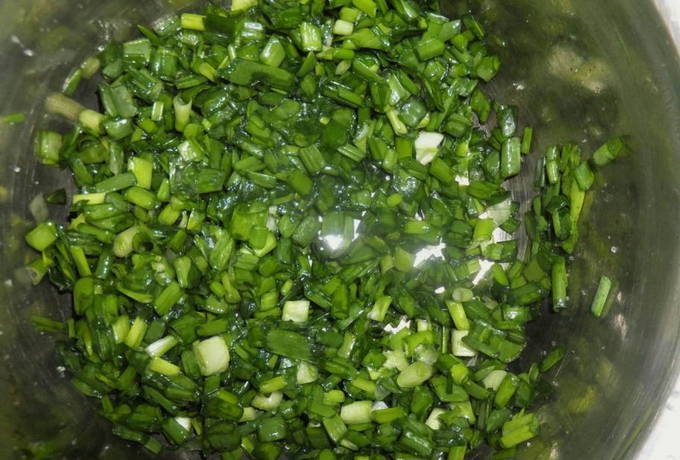 - Snijd voor de vulling de groene ui en voeg zout naar smaak toe.