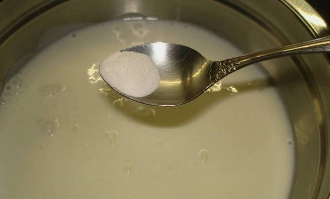 - Verwarm de kefir lichtjes in de magnetron en los de soda erin op.