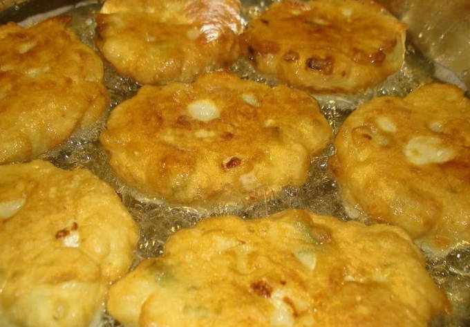 Gebakken taarten met uien en eieren