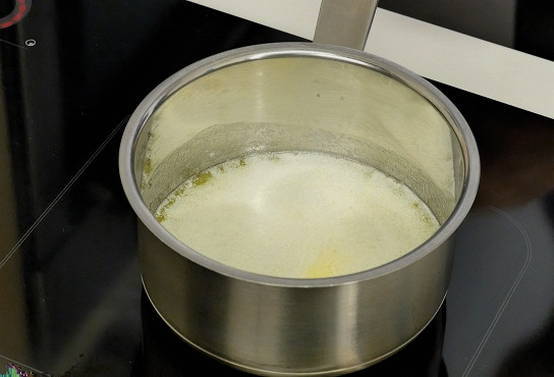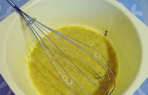- Klop het mengsel met een garde.