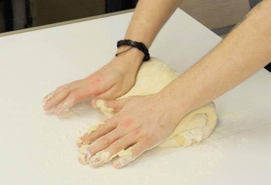 Kneed het deeg en leg het 30 minuten op een warme plaats.