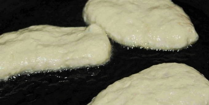 - Verhit de pan met veel olie. Dompel het deeg hier met een lepel in. Bak aan alle kanten goudbruin.