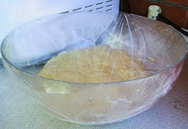 - Vervolgens wikkelen we het product in plasticfolie en laten het 30-40 minuten op een warme plaats staan.
