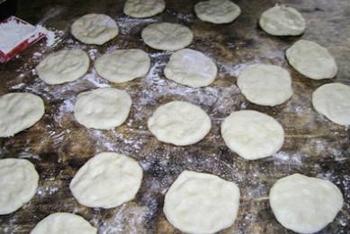 - Verdeel het werkstuk in kleine stukjes en kneed ze tot platte cakes.