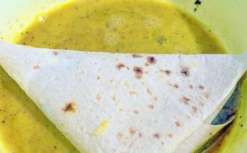 - We dopen elke taart aan beide kanten in een blanco ei en bakken vervolgens 2 minuten aan elke kant in een pan.
