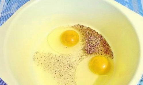 - Combineer de resterende eieren in een brede container met gemalen zwarte peper.