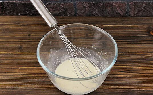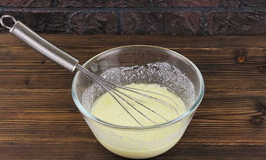 - Klop het mengsel met een garde.