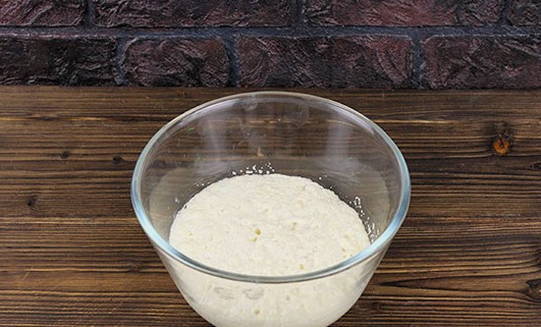 - Meng het melkmengsel met het deeg en de bloem. Kneed de producten tot een homogeen deeg en laat het 30 minuten op een warme plaats staan.