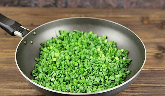 - Snijd voor de vulling de groene ui en voeg zout naar smaak toe.