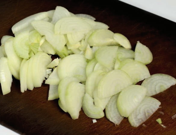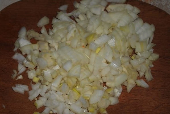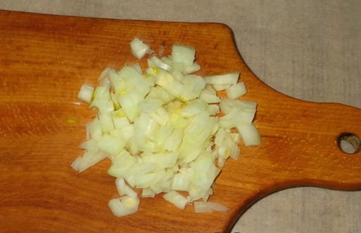 - Snijd de ui in kleine blokjes.