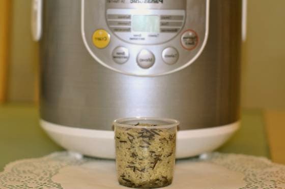 - We meten de rijst af met één gewoon glas of twee maatbekers voor een multicooker. Proportie is belangrijk.