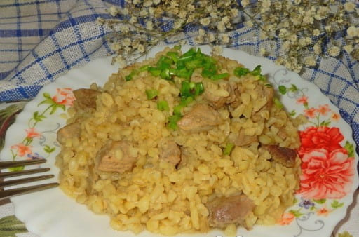 - Krokante bulgur pilaf met varkensvlees in een slowcooker