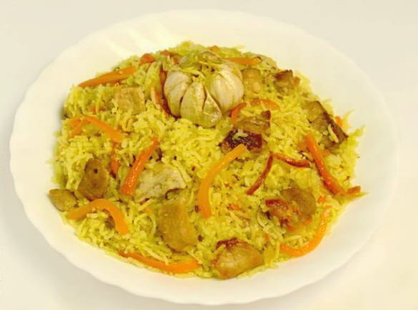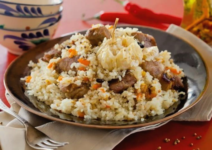 - Oezbeekse pilaf met varkensvlees is klaar! Serveer warm en smaakvol.