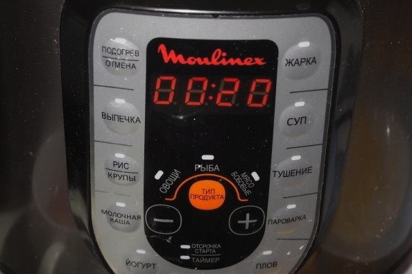 - We zetten de "Pilaf" -modus 20 minuten aan en wachten op het koken.