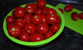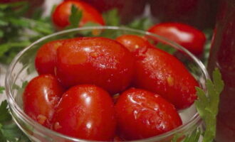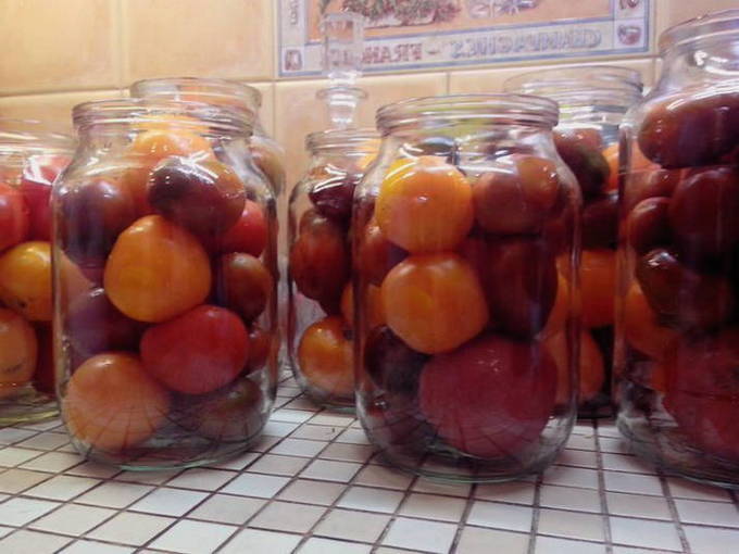 - Was en steriliseer naadpotten. Was de tomaten. Schik de dikkere en kleinere in de potten.
