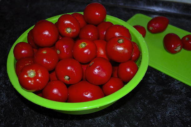 - Voor het naaien kunt u het beste kleine tot middelgrote tomaten gebruiken. Was en droog de groenten.