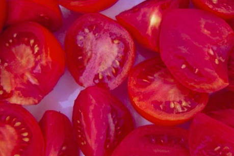 - Snijd de tomaten in partjes.