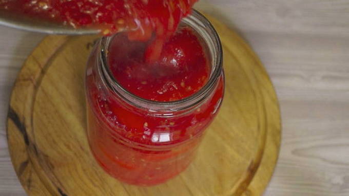 Tomaten in hun eigen sap zijn een geweldige manier om alle vitamines en natuurlijke smaak van tomaten te behouden. Naadsaus kan aan verschillende gerechten worden toegevoegd: soepen, jus, spaghetti, lasagne.