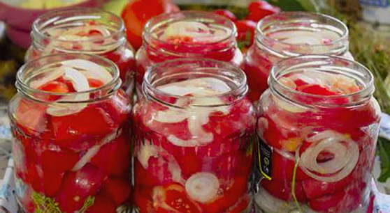 - Giet azijn in de potten en rol ze op. Wikkel hete naden in een deken totdat ze volledig zijn afgekoeld. Bewaar tomaten en uien in hun eigen sap op een koele plaats.