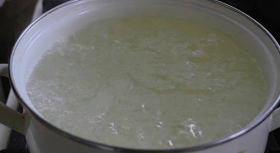 - Giet het sap in een pan, breng aan de kook. Voeg vervolgens zout en suiker toe en kook 10 minuten.