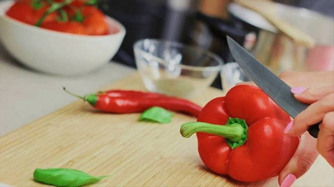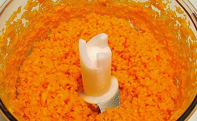 - We wassen de paprika en snijden hem in de lengte in twee delen. We verwijderen de kern en spoelen de groente opnieuw. Snijd elke helft van de peper opnieuw en maal de hele massa in een blender.