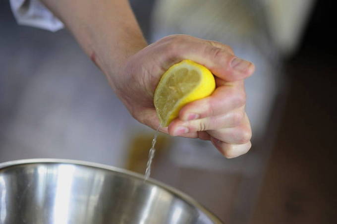 - Vervolgens sturen we de kruiden, die we vooraf vermalen. We wassen de citroen, vegen hem af met een handdoek en persen het sap uit het fruit met een sapcentrifuge of met de hand. We gieten het in een pan.