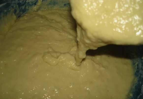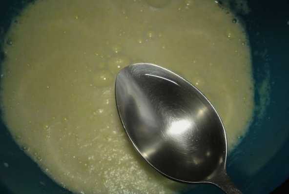 - We concentreren ons op de uiteindelijke consistentie: de massa moet dik, ongevormd zijn, in een zacht stuk van de lepel vallen.