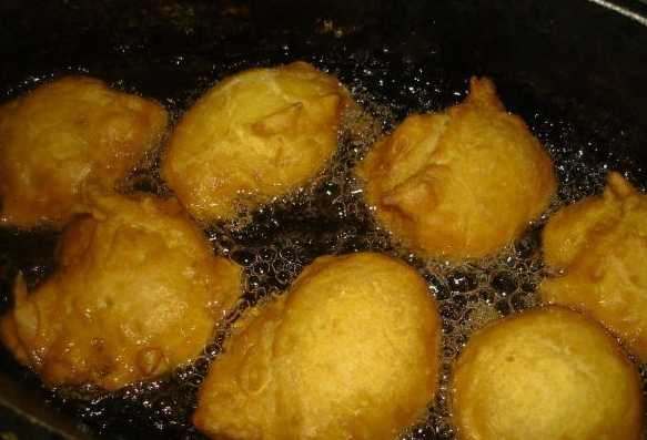 - Verhit in een frituurpan de geurloze plantaardige olie goed. We vormen donuts van het deeg - kleine balletjes. Om het werk gemakkelijker te maken, kunnen de handpalmen worden ingevet met plantaardige olie. Dompel de deegballen in kokende olie en bak ze al roerend aan alle kanten goudbruin.