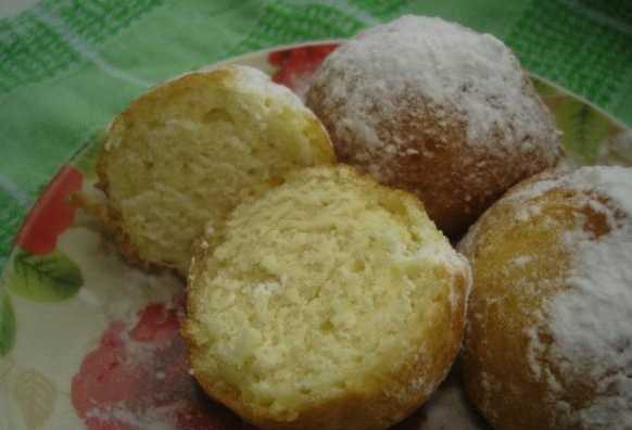 Wrongel donuts zijn zacht en mals, met een poreuze vochtige kruim en een knapperige rossige korst. Bestrooid met een waas van poedersuiker zien ze er erg smakelijk uit en nodigen ze uit om een monster te nemen. Als je zo'n bal hebt geprobeerd, is het onmogelijk om te stoppen. Het wordt aanbevolen om deze donuts direct na het koken te serveren, terwijl ze warm zijn: in deze staat is het kruim vochtig en buigzaam en behoudt de korst zijn knapperige eigenschappen. Een kopje thee of koffie zou een ideale aanvulling zijn.