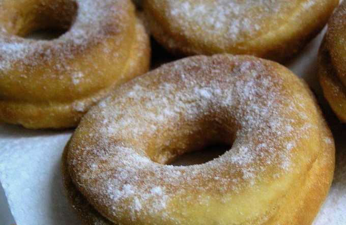 Deze donuts worden gekookt op een gistvrij deeg. Wij gebruiken melk als vloeibare basis. Om de producten weelderig en poreus te maken, gebruiken we soda en zorgen we ervoor dat de bloem wordt gezeefd bij het kneden van het deeg. Na het frituren raden we aan om de hete donuts af te drogen met keukenpapier - de overtollige olie zal erin worden opgenomen en de donuts zelf zullen minder vettig zijn. Bestrooi de donuts bij het serveren met poedersuiker om de rijke smaak van het deeg te laten uitkomen en de zoetheid van het dessert meer uitgesproken te maken.