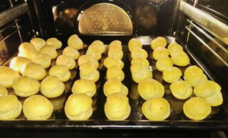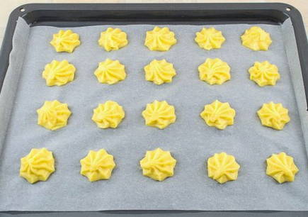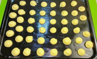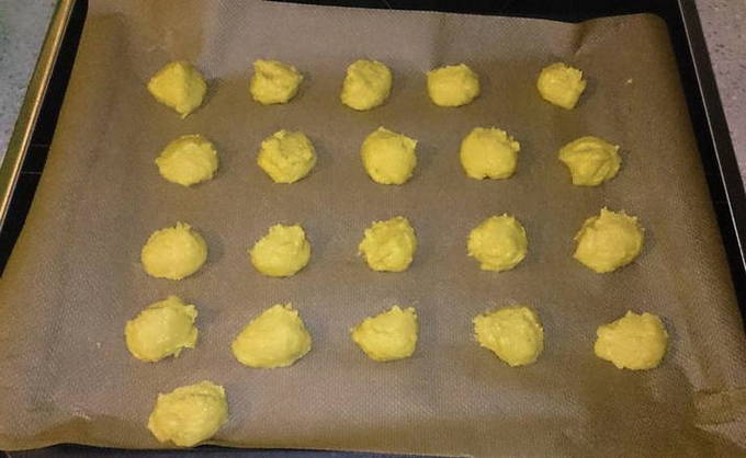 - Leg het afgewerkte deeg in porties op een bakplaat met perkament. We bakken het product 20 minuten op een temperatuur van 180 graden.