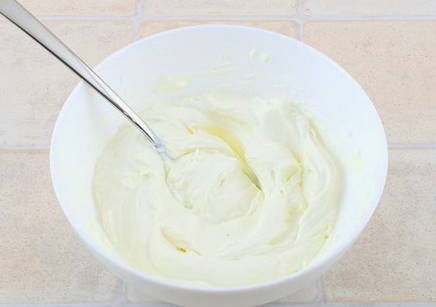 - Op dit moment zullen we de crème behandelen. Combineer boter met gecondenseerde melk. Klop de producten tot een gladde massa.