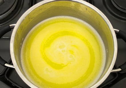- Dompel water, boter en zout onder in een pan. Kook de inhoud op matig vuur.