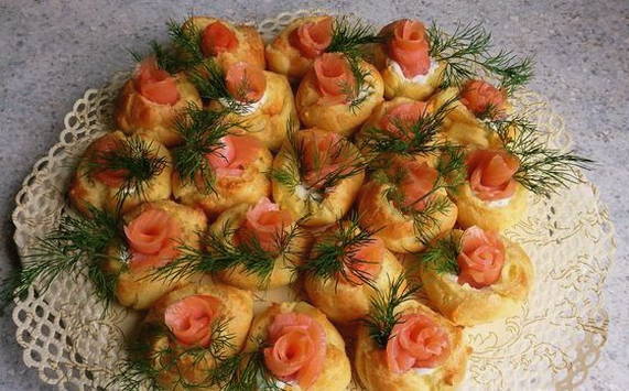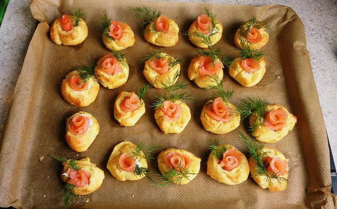 Delicate soesjes met hartige vulling zullen een heldere oplossing zijn voor uw feestelijke tafel. Probeer een eenvoudig zelfgemaakt recept met rode vis en kwark.