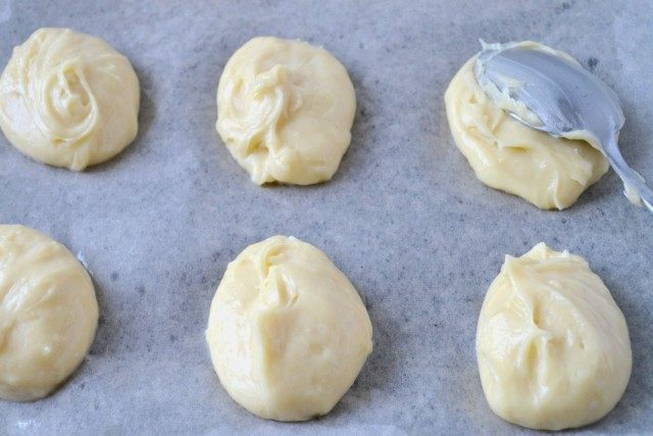 Knijp de massa uit op een bakplaat en vorm kleine soesjes.