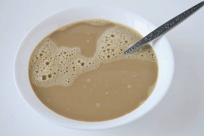 - Meng voor de room eieren, rietsuiker en gecondenseerde melk. Klop de producten tot een gladde massa. Schenk hier koffie in, waarin we vooraf het zetmeel oplossen.