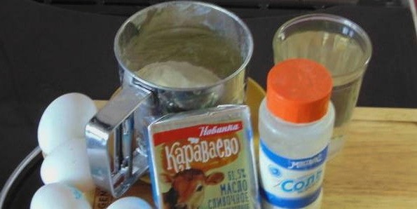 - Om het deeg te bereiden, kook je water en dompel je er een snufje zout en olie in. We koken het mengsel totdat een homogene samenstelling is verkregen.