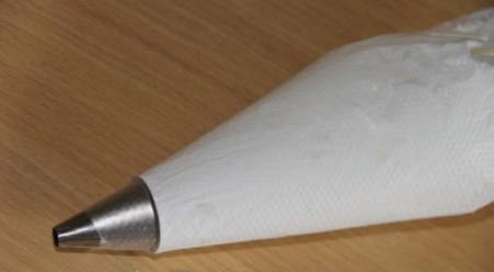- We plaatsen het deeg in een spuitzak. Met zijn hulp verdelen we de soesjes op een bakplaat met perkament.