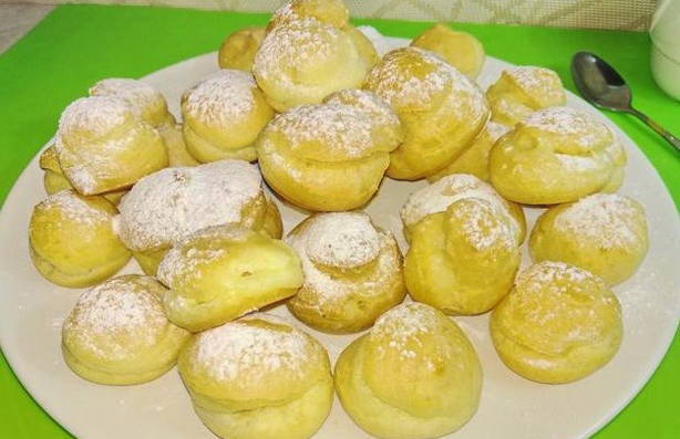 Zachte en malse soesjes met custard zijn eenvoudig te bereiden volgens het klassieke recept. Zelfgemaakt dessert zal een familietheekransje of een feestelijke tafel versieren. Let op een heerlijk culinair idee.
