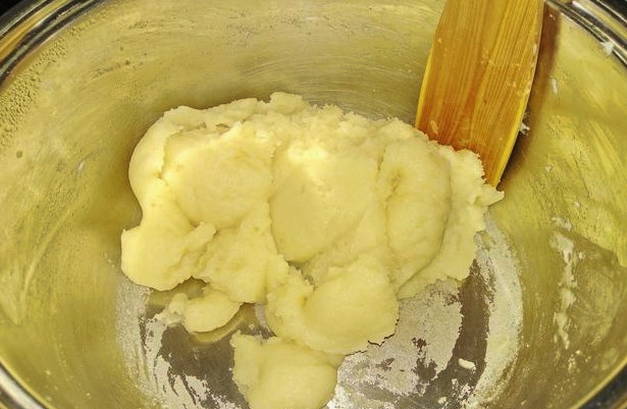 - Smelt de boter en voeg er water en gezeefde bloem aan toe. Roer de massa actief en bewaar deze op het fornuis. Roer op het einde de eieren erdoor.