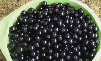 - We snijden de zwarte bessen van de twijgen en vullen ze enkele uren met koud water. Al het afval zal naar boven drijven. Giet het vuile water af, spoel het opnieuw af met stromend water en laat het drogen op een servet.