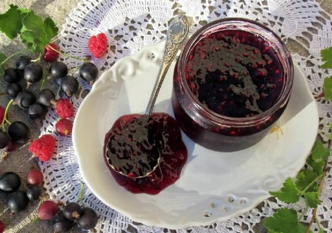 De tandem van zwarte bes en framboos maakt van elk dessert een gezond, aromatisch en smakelijk gerecht. Als je er bijvoorbeeld vijf minuten gelei van maakt, kun je het bij de thee eten en als vulling in een taart doen, of je favoriete ijs schenken. Het belangrijkste is om het goed te koken.Volg hiervoor het stapsgewijze recept.