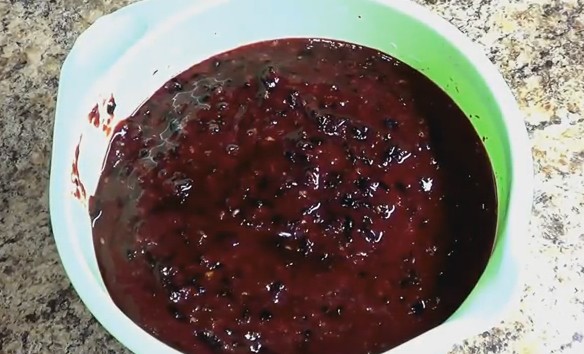 - IK BENjaar sorteren en wassen we zwarte bessen. Maal ze met een blender of vleesmolen. Je moet een mooie puree maken.